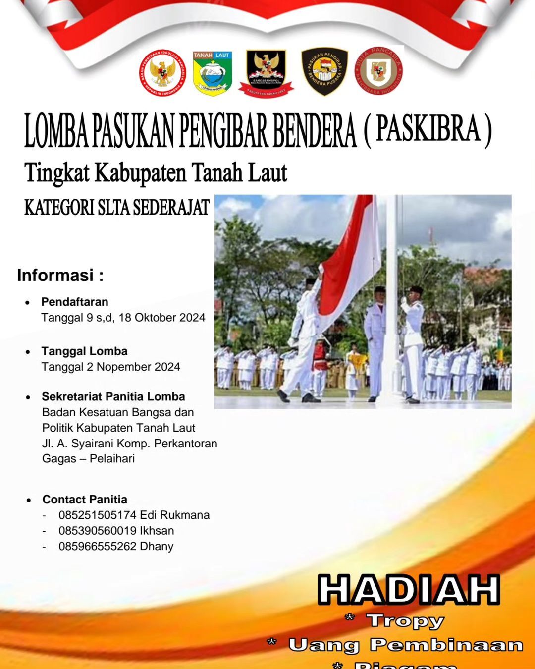 Lomba Pasukan Pengibar Bendera (Paskibra) Tahun 2024 Tingkat Kabupaten Tanah Laut