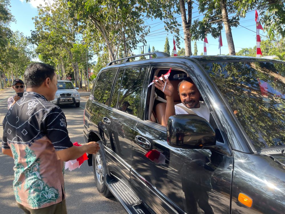 Pembagian Bendera Merah Putih oleh Badan Kesatuan Bangsa dan Politik Bersama IPSI Kera Sakti di Pela
