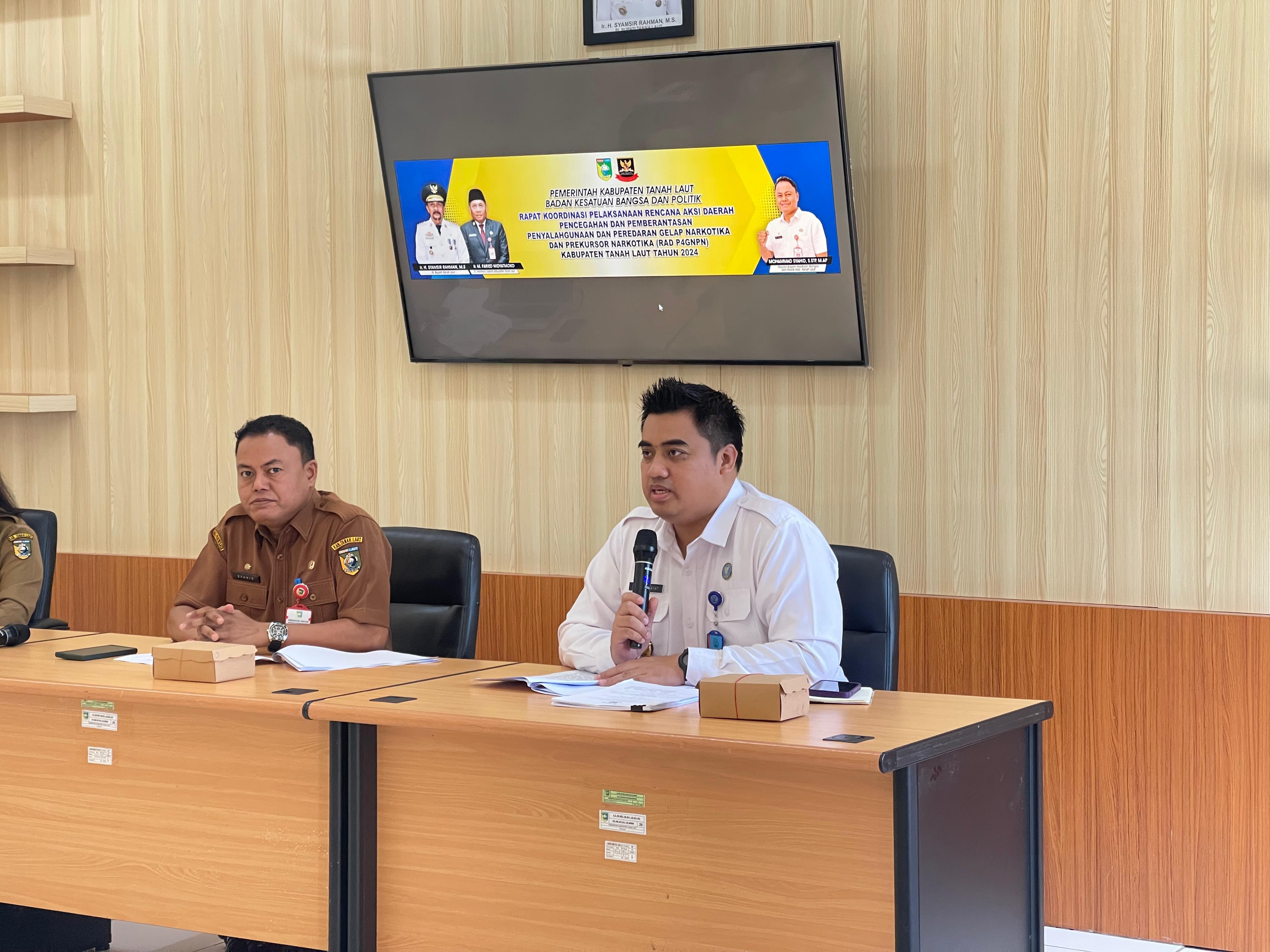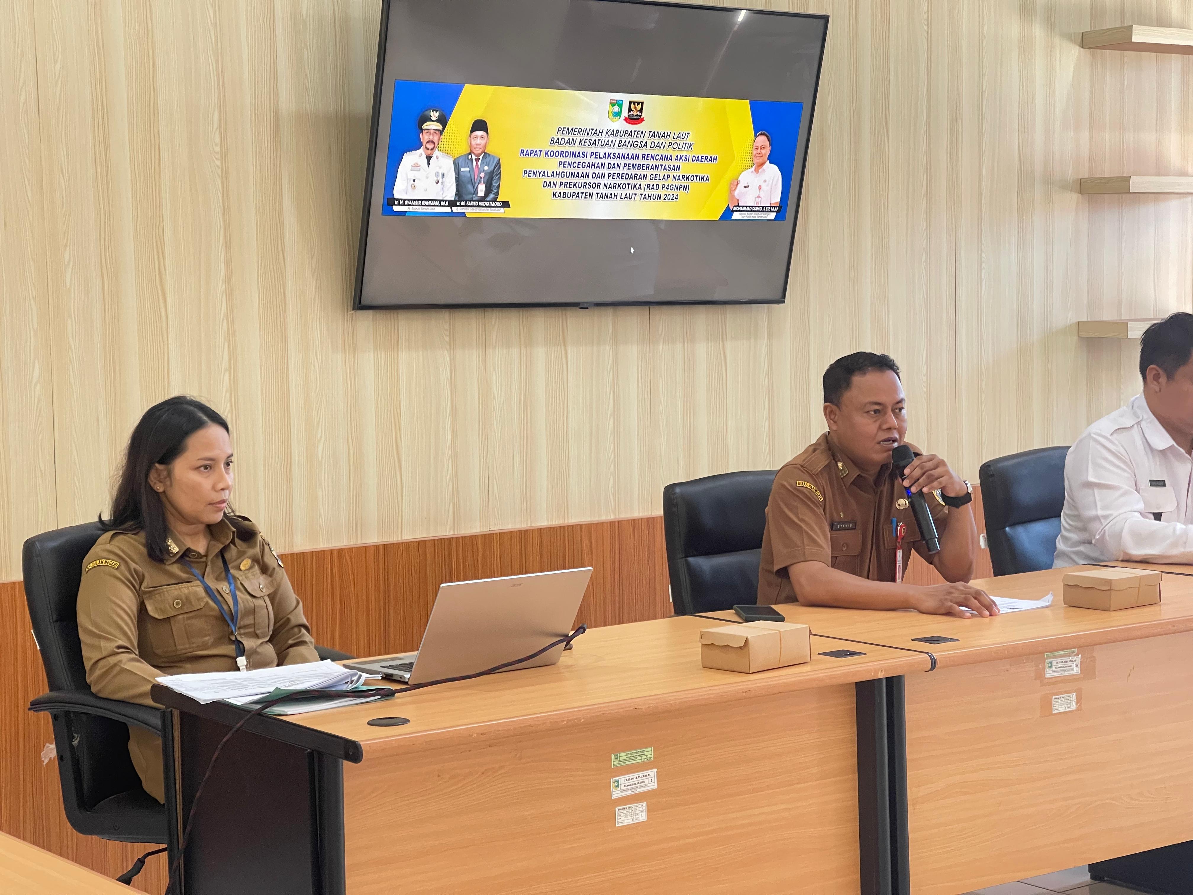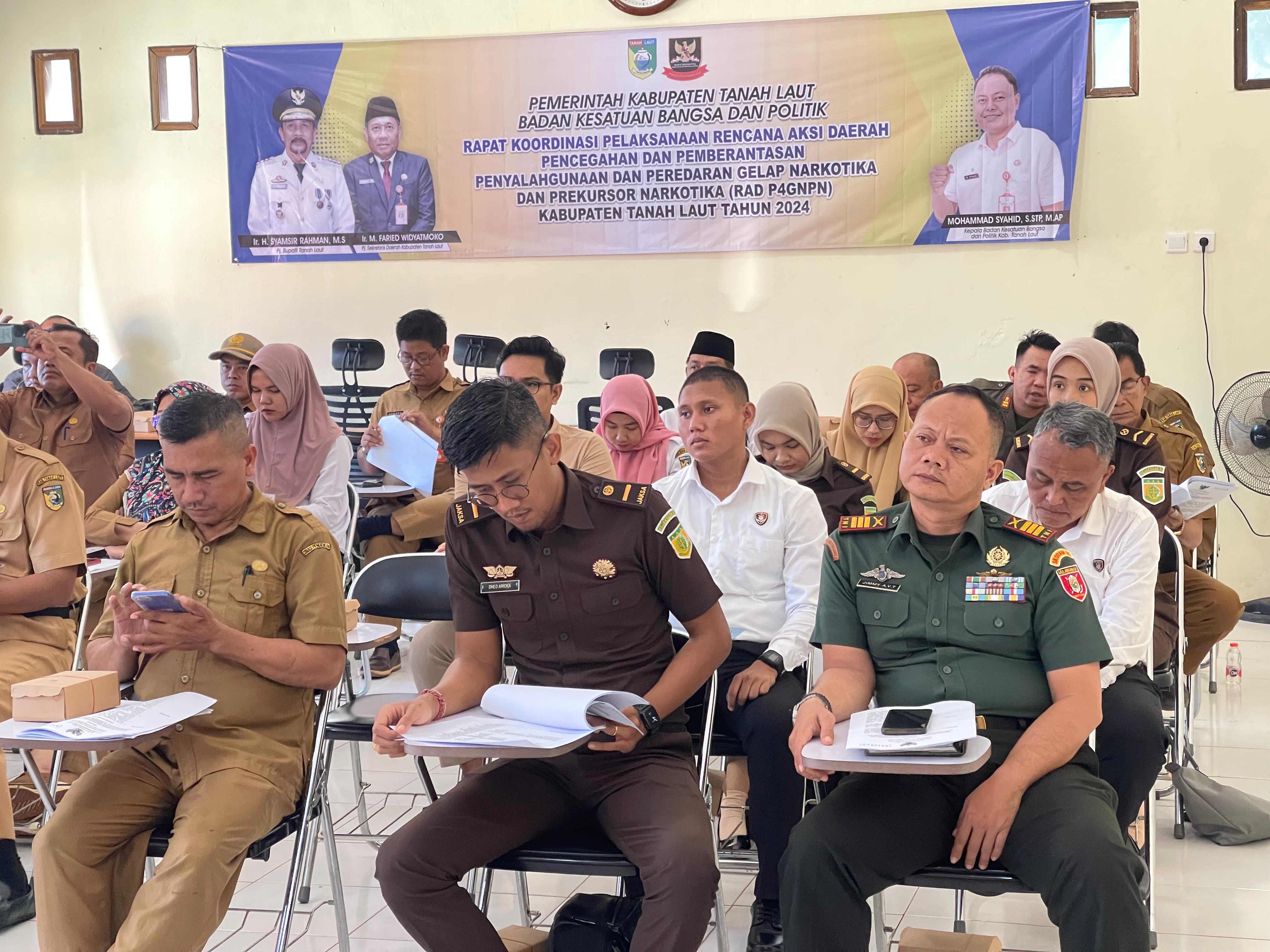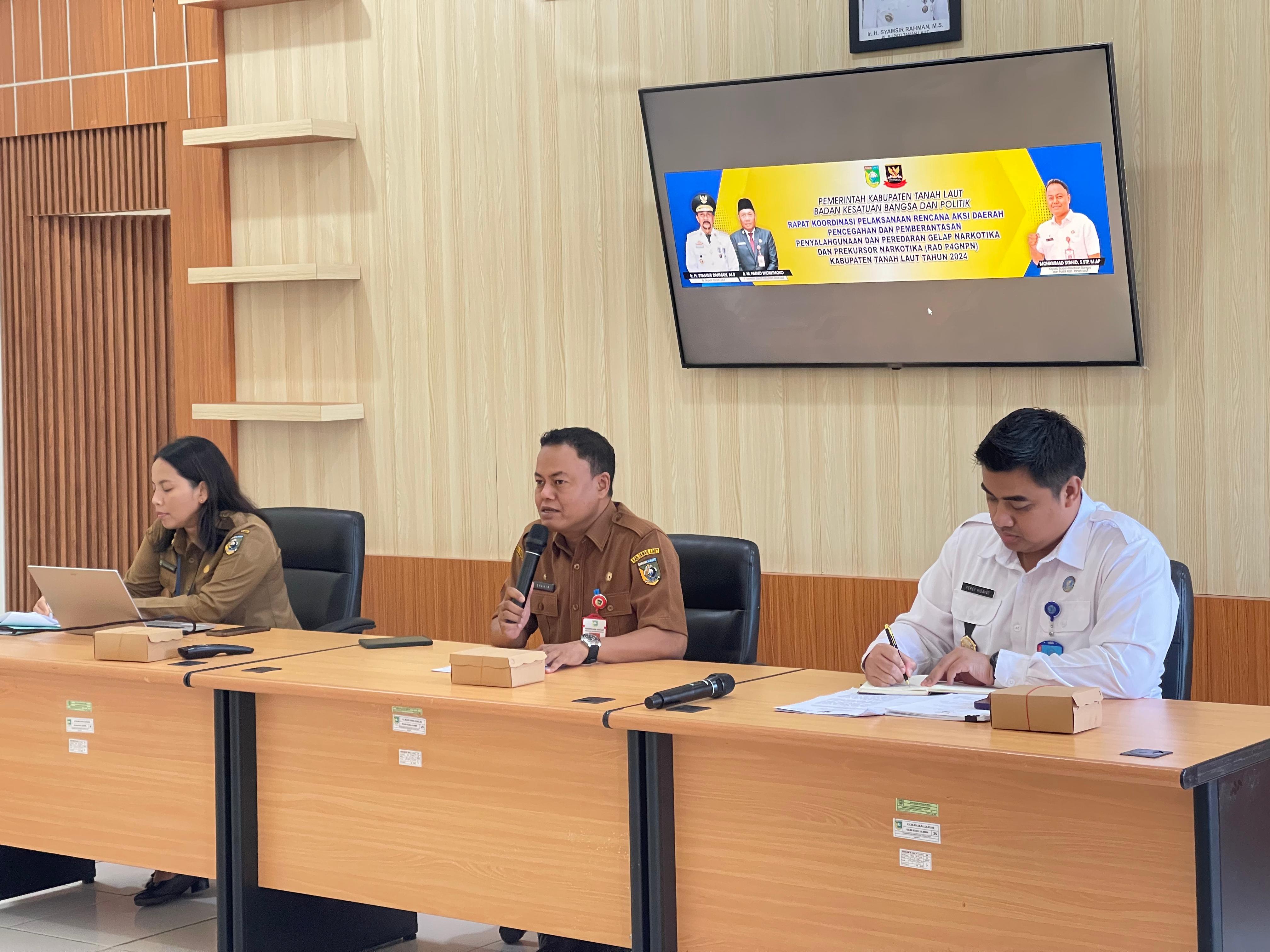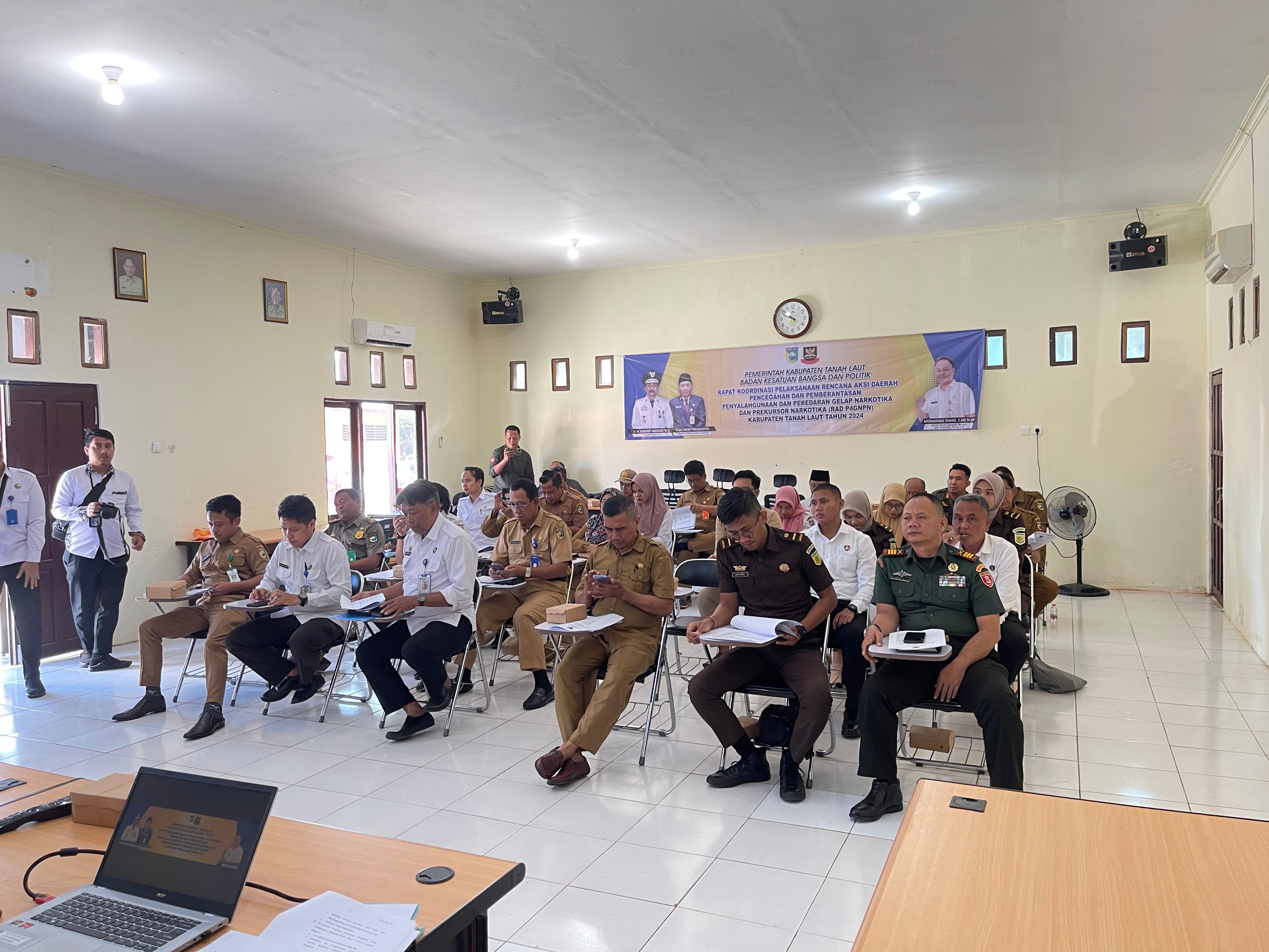 Pada hari Senin, 10 Juni 2024, di Aula Bela Negara Bakesbangpol Kabupaten Tanah Laut, dilaksanakan Rapat Koordinasi Pelaksanaan Rencana Aksi Daerah Pencegahan Dan Pemberantasan Penyalahgunaan Dan Peredaran Gelap Narkotika Dan Prekursor Narkotika (RAD P4GNPN) Kabupaten Tanah Laut Tahun 2024.