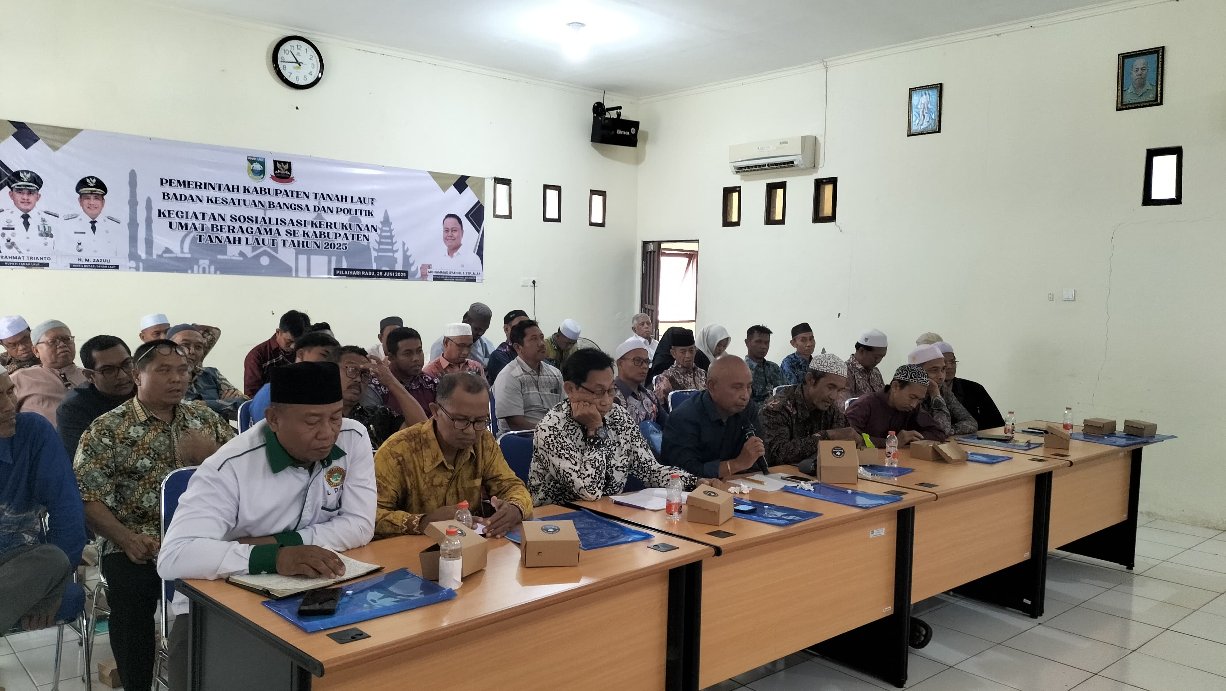 Badan Kesatuan Bangsa dan Politik (Bakesbangpol) Kabupaten Tanah Laut menyelenggarakan kegiatan Sosialisasi Kerukunan Umat Beragama se-Kabupaten Tanah Laut Tahun 2025 pada Rabu, 25 Juni 2025 bertempat di Aula Bela Negara, Bakesbangpol Tanah Laut. Kegiatan ini bertujuan memperkuat rasa saling menghargai, toleransi, dan keharmonisan antar umat beragama di daerah ini.