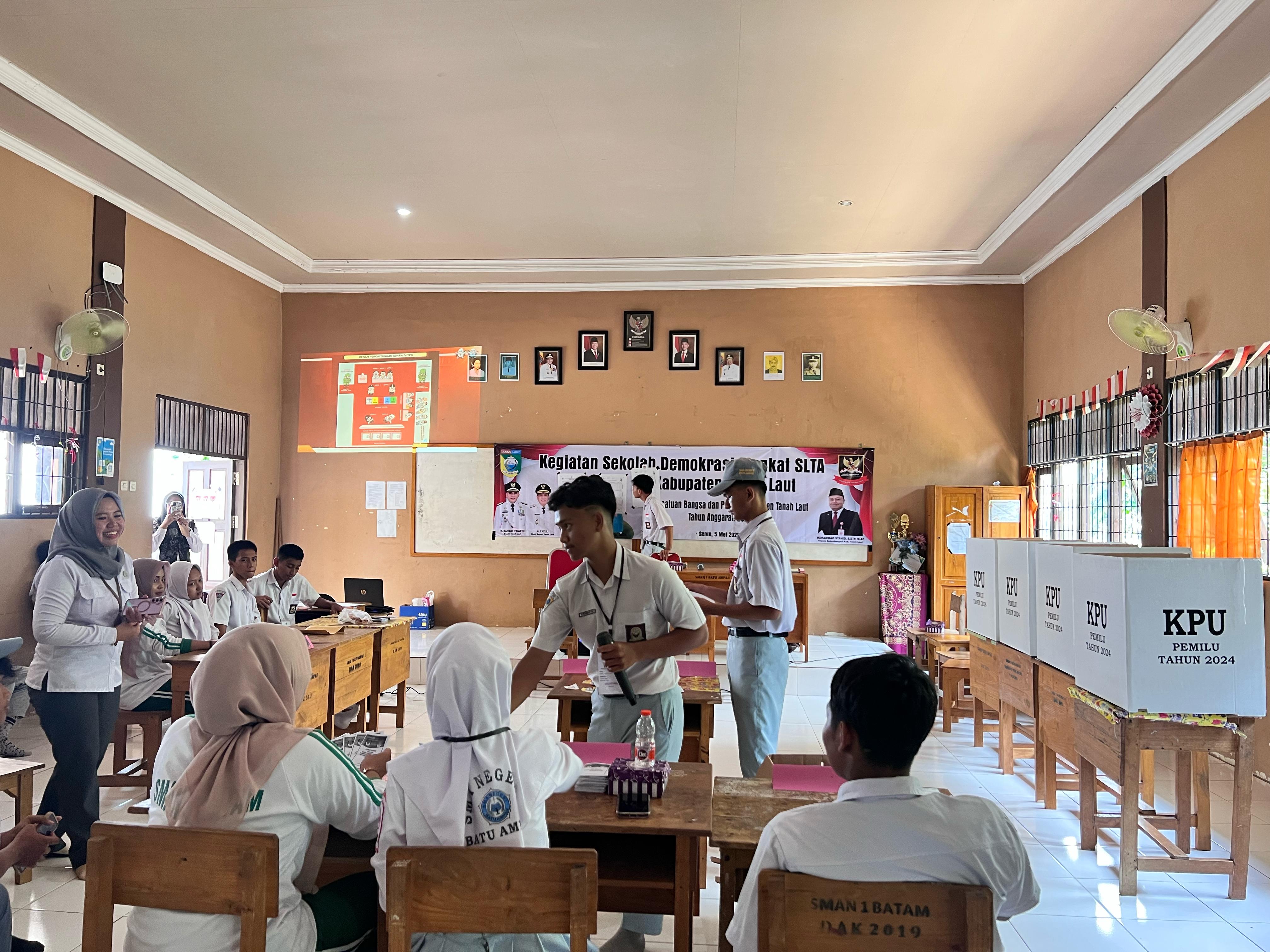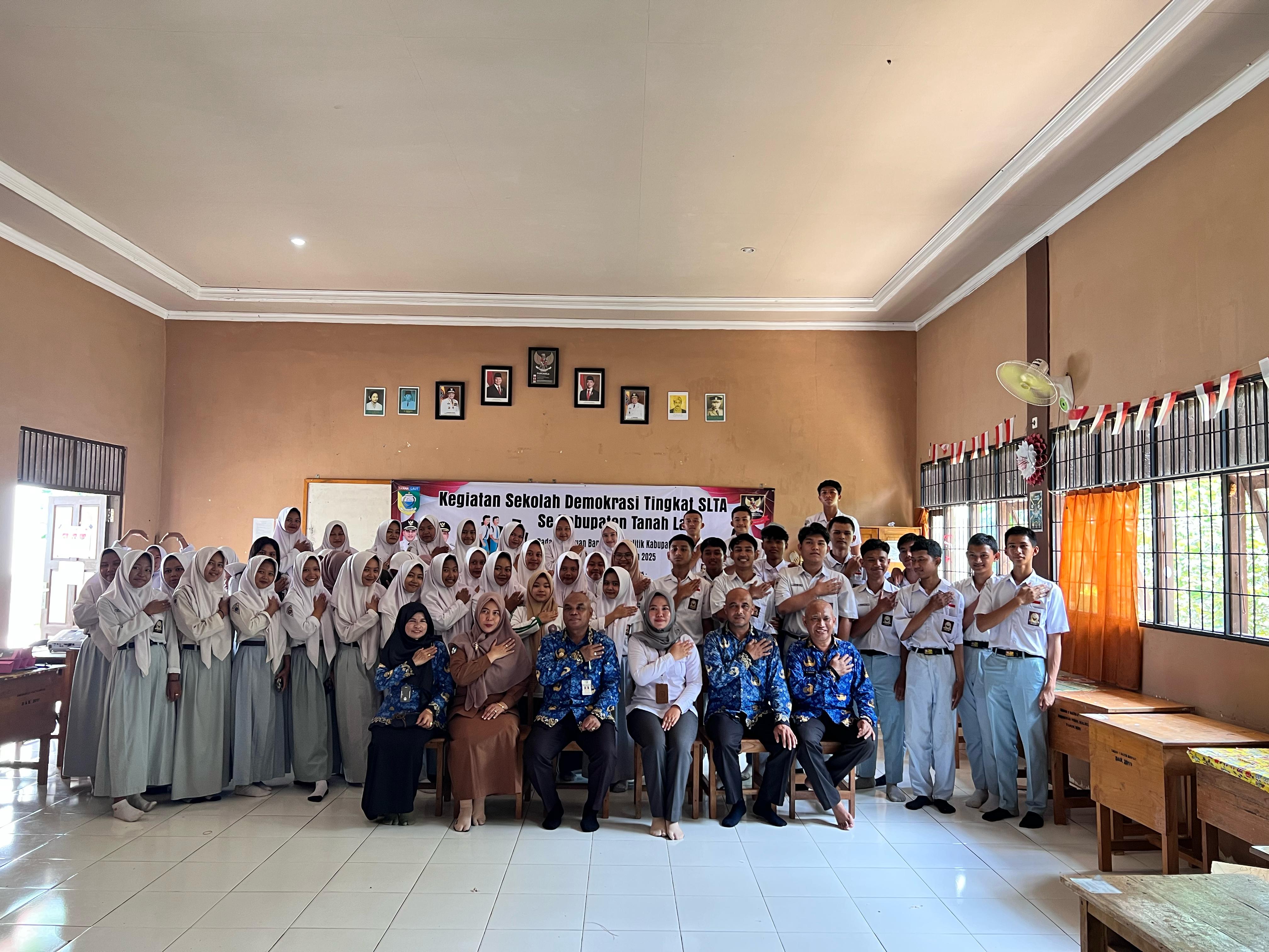 Batu Ampar, 5 Mei 2025 — Badan Kesatuan Bangsa dan Politik (Kesbangpol) Kabupaten Tanah Laut menggelar kegiatan Sekolah Demokrasi tingkat SLTA se-Kabupaten Tanah Laut di SMA Negeri 1 Batu Ampar. Kegiatan ini diikuti oleh para siswa kelas X, dan XI, dengan total peserta sebanyak 50 orang, terdiri dari 13 siswa laki-laki dan 37 siswa perempuan.