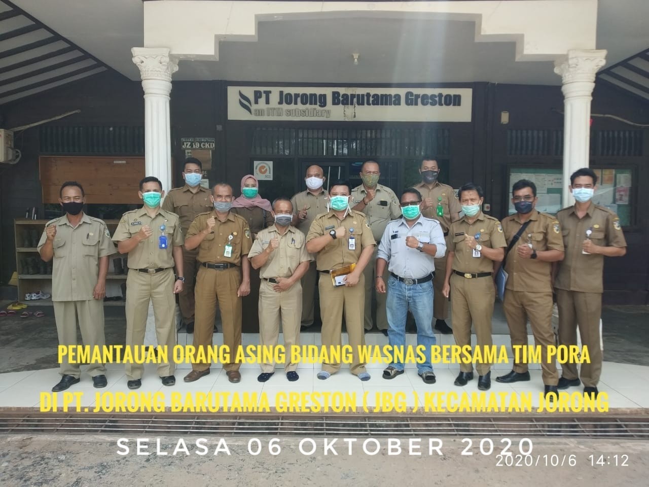 Selasa, 3 November 2020 Bidang Wasnas Badan Kesbangpol Kab. Tanah Laut telah melakukan kegiatan pemantauan orang asing di PT. Hyundai / PLTU di Kecamatan Jorong Kabupaten Tanah Laut.